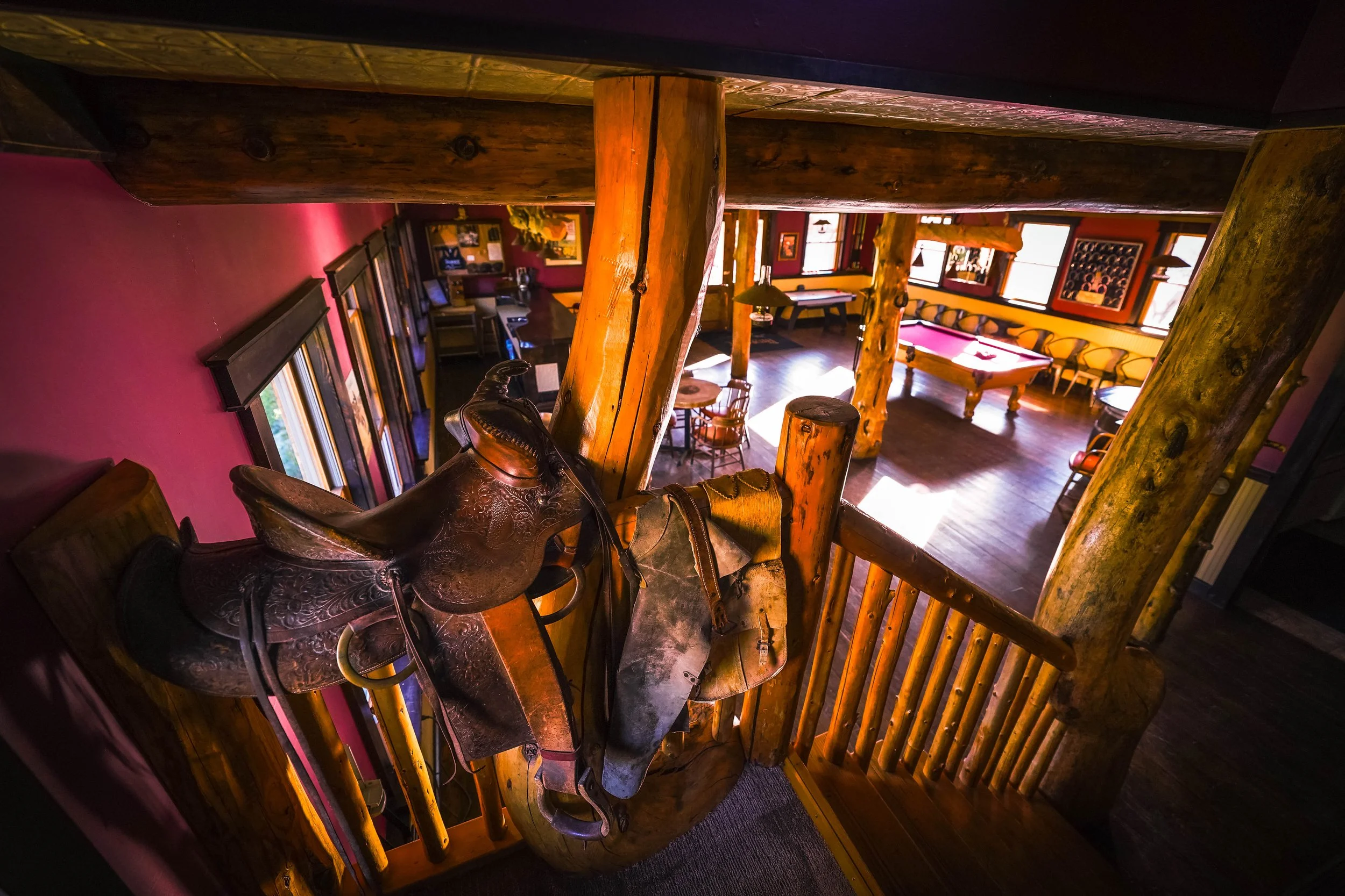 Welcome to our Saloon. This saloon looks like its been tucked away here since the days of the wells Fargo train robbers and Billy the kid. Downstairs you will find lots of space that includes our custom built bar, pool table, air hockey table, kitchen and full bathroom.